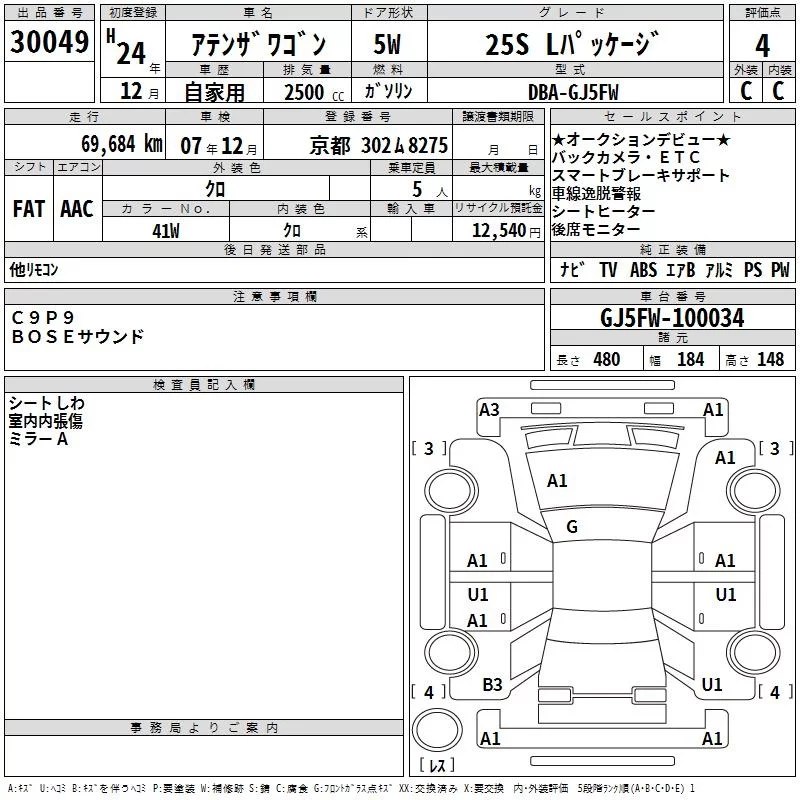 Mazda ATENZA WAGON 2012 • 2073802 ₽ под ключ из Японии