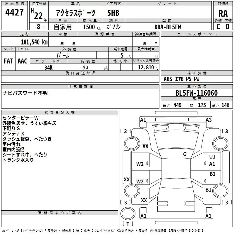 15C NAVI EDITION | DBA-BL5FP | ZY-VE | FF | CVT | 1498cc | 111ps(82kW)/6000rpm | AИ-92 | 1 781 000 |