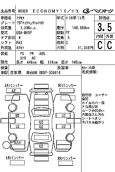 15C | DBA-BK5P | ZY-VE | FF | 4AT | 1498cc | 114ps(84kW)/6000rpm | AИ-92 | 1 650 000 | |