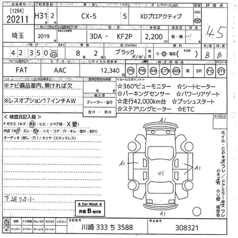 XD L PACKAGE | 3DA-KF2P | SH-VPTS | Full-time 4WD | 6AT | 2188cc | 190ps(140kW)/4500rpm | Дизельное топливо | 3 624 500 | |