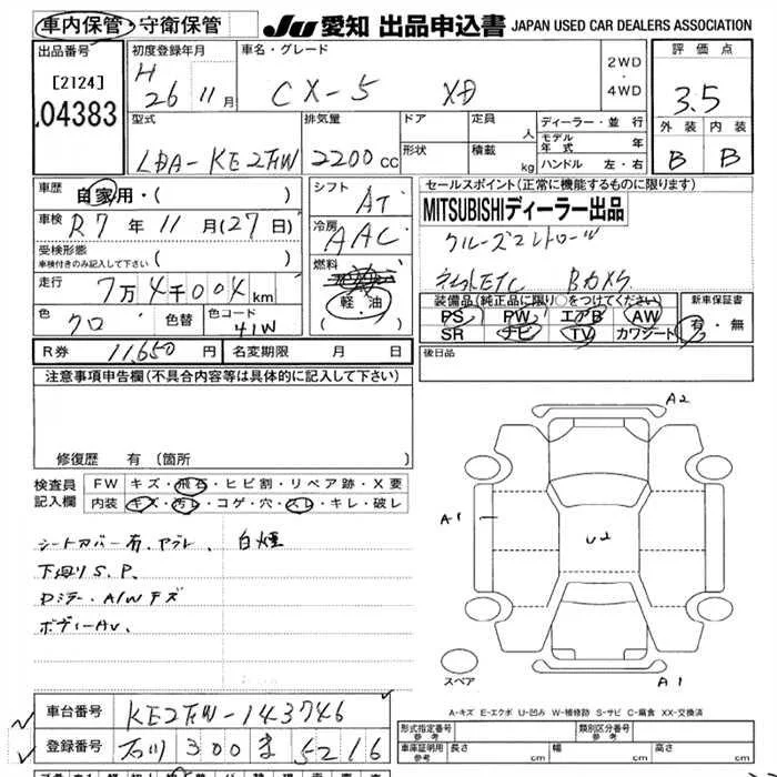 XD L PACKAGE | LDA-KE2AW | SH-VPTS | Full-time 4WD | 6AT | 2188cc | 175ps(129kW)/4500rpm | Дизельное топливо | 3 283 200 | |