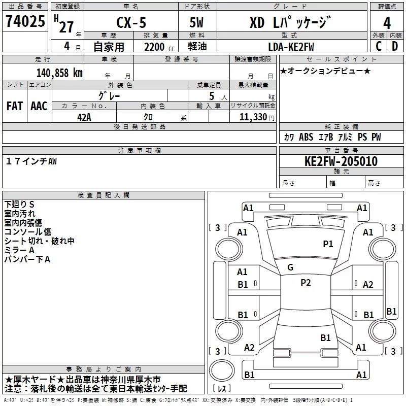 XD L PACKAGE | LDA-KE2AW | SH-VPTS | Full-time 4WD | 6AT | 2188cc | 175ps(129kW)/4500rpm | Дизельное топливо | 3 488 400 | |