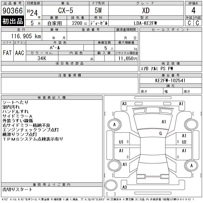 XD L PACKAGE | LDA-KE2AW | SH-VPTS | Full-time 4WD | 6AT | 2188cc | 175ps(129kW)/4500rpm | Дизельное топливо | 3 190 000 | |