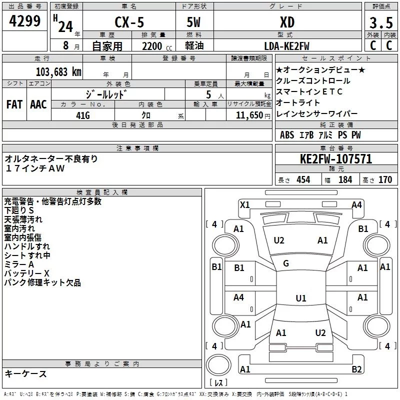 XD L PACKAGE | LDA-KE2AW | SH-VPTS | Full-time 4WD | 6AT | 2188cc | 175ps(129kW)/4500rpm | Дизельное топливо | 3 190 000 | |