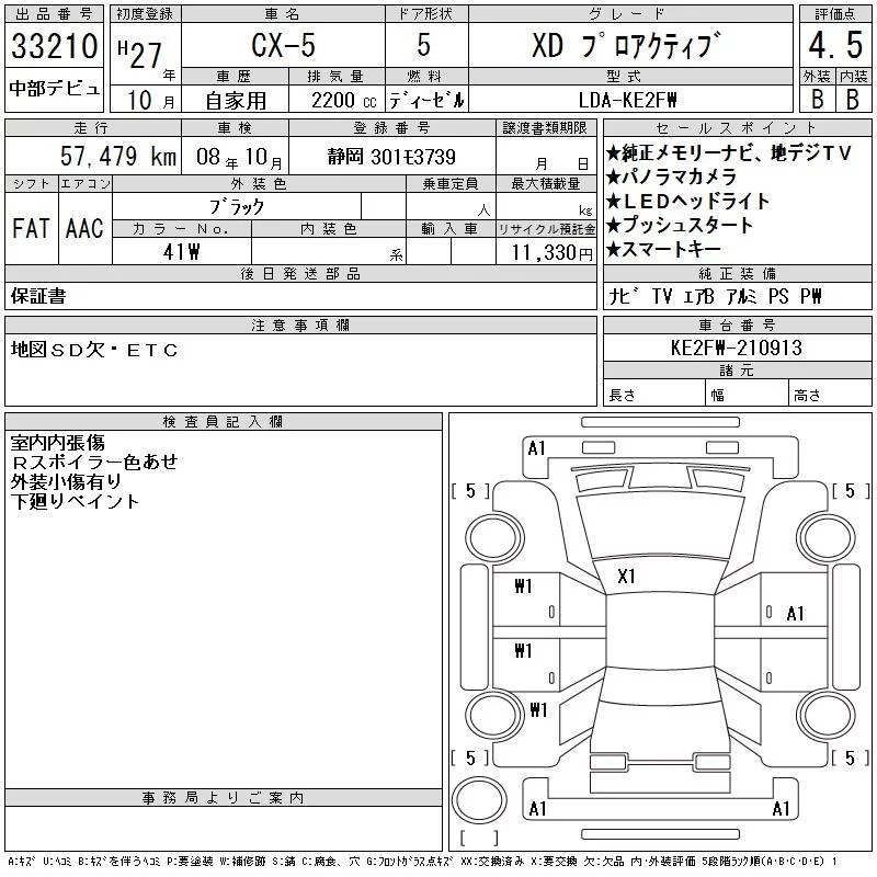 XD L PACKAGE | LDA-KE2AW | SH-VPTS | Full-time 4WD | 6AT | 2188cc | 175ps(129kW)/4500rpm | Дизельное топливо | 3 488 400 | |