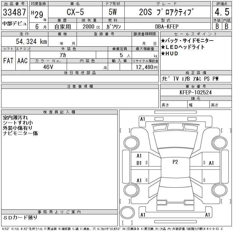 25S PROACTIVE | DBA-KF5P | PY-VPS | Full-time 4WD | 6AT | 2488cc | 184ps(135kW)/6000rpm | AИ-92 | 2 916 000 | |