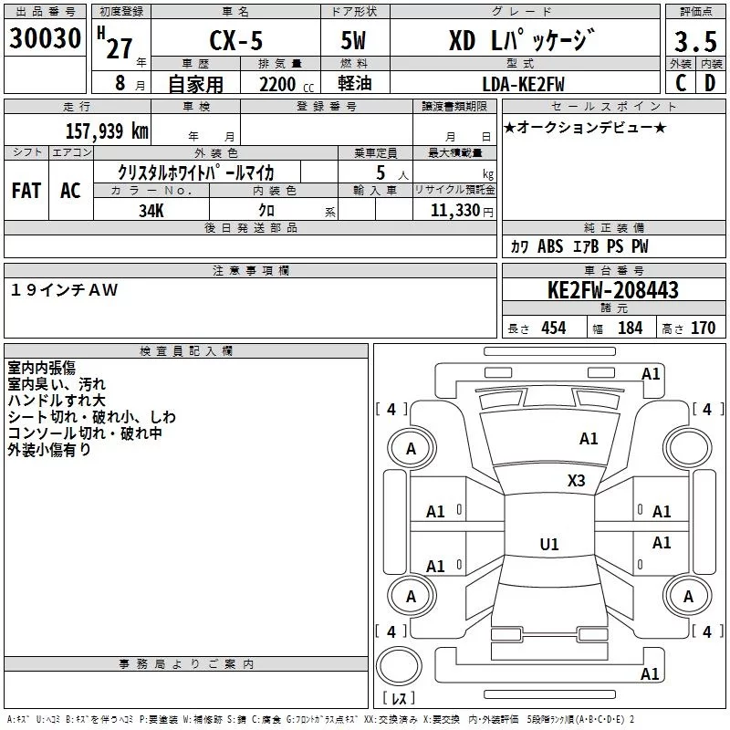 XD L PACKAGE | LDA-KE2AW | SH-VPTS | Full-time 4WD | 6AT | 2188cc | 175ps(129kW)/4500rpm | Дизельное топливо | 3 488 400 | |