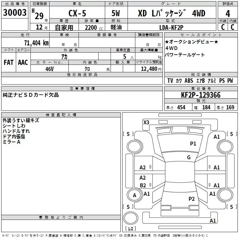 XD PROACTIVE | LDA-KF2P | SH-VPTS | Full-time 4WD | 6AT | 2188cc | 175ps(129kW)/4500rpm | Дизельное топливо | 3 229 200 | |