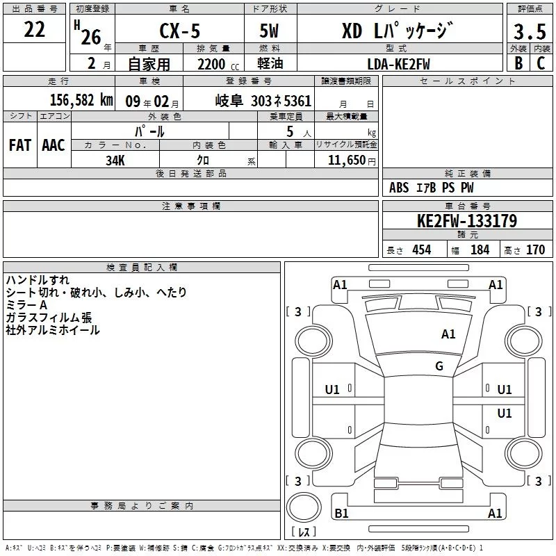 XD L PACKAGE | LDA-KE2AW | SH-VPTS | Full-time 4WD | 6AT | 2188cc | 175ps(129kW)/4500rpm | Дизельное топливо | 3 283 200 | |