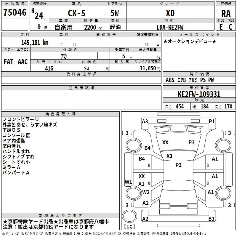 XD L PACKAGE | LDA-KE2AW | SH-VPTS | Full-time 4WD | 6AT | 2188cc | 175ps(129kW)/4500rpm | Дизельное топливо | 3 190 000 | |