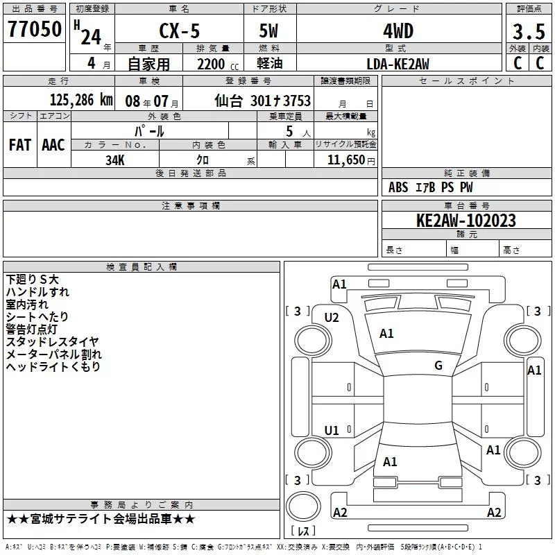 XD L PACKAGE | LDA-KE2AW | SH-VPTS | Full-time 4WD | 6AT | 2188cc | 175ps(129kW)/4500rpm | Дизельное топливо | 3 190 000 | |