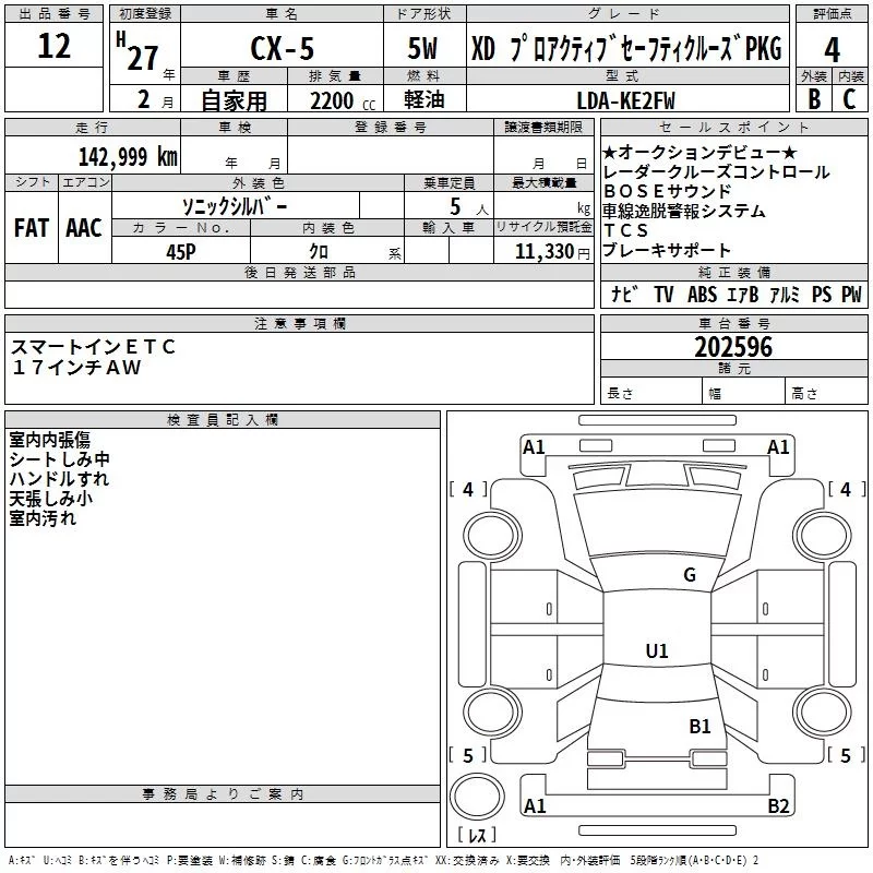 XD L PACKAGE | LDA-KE2AW | SH-VPTS | Full-time 4WD | 6AT | 2188cc | 175ps(129kW)/4500rpm | Дизельное топливо | 3 488 400 | |