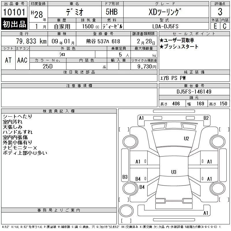 B2Вмятина с царапиной (размером с ладонь)