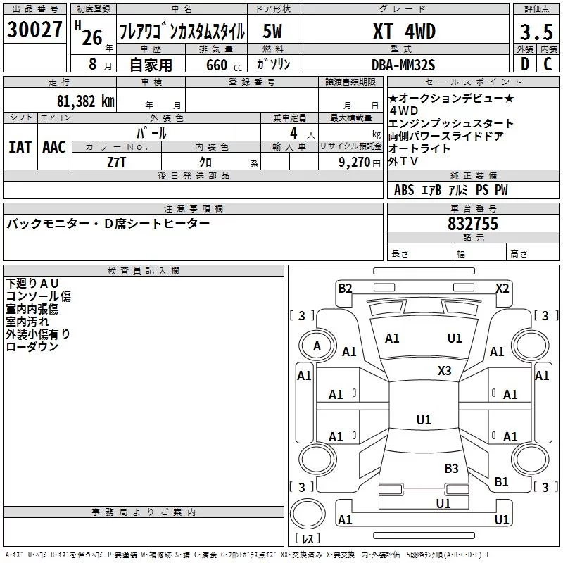 XS | DBA-MM32S | R06A | Full-time 4WD | CVT | 658cc | 52ps(38kW)/6000rpm | AИ-92 | 1 535 760 | |