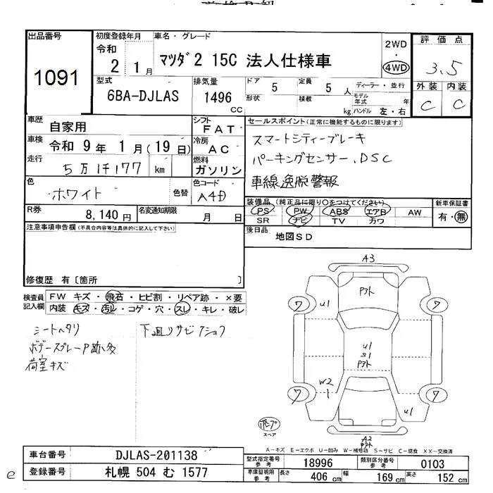• Комплектация: 4WD 15C ホウジン Not Used シャ