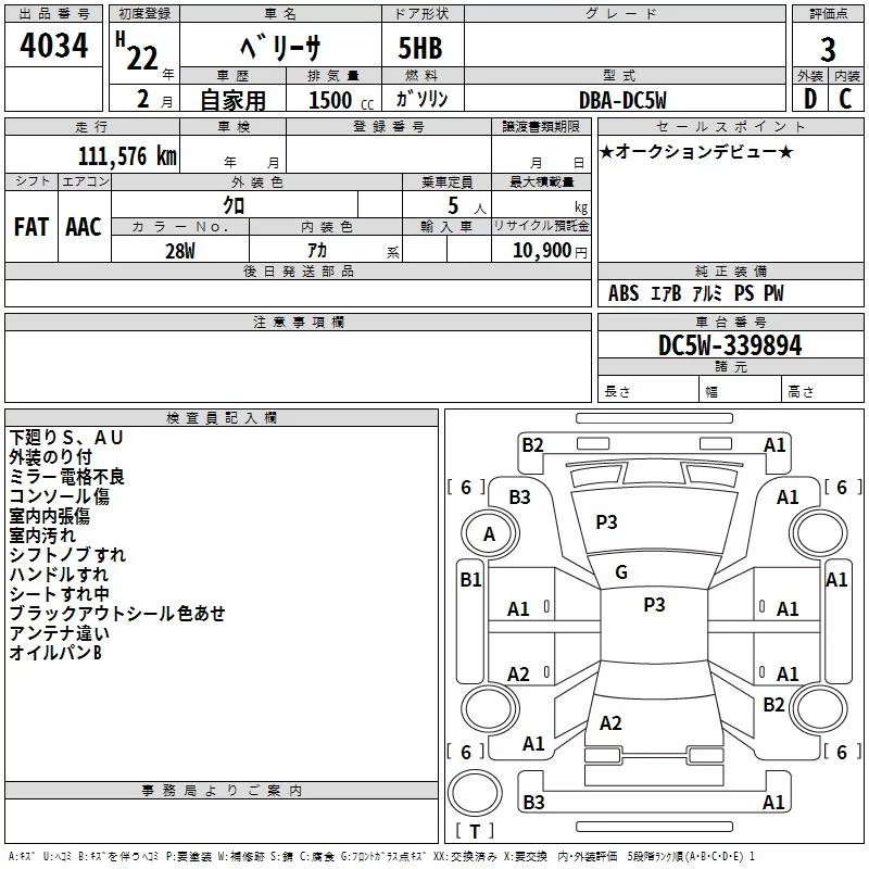 • Аукционный лист