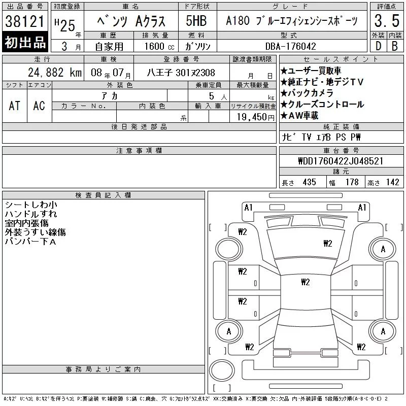• Комплектация: A180 Bエフィシェンシ- Sports