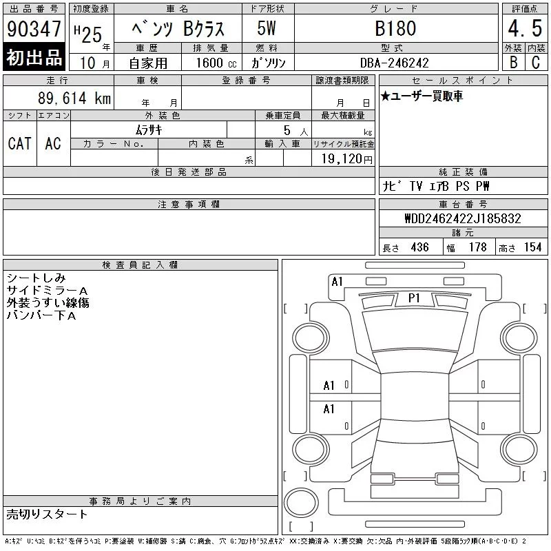 Mercedes-Benz B CLASS 2013 • 862129 ₽ под ключ из Японии