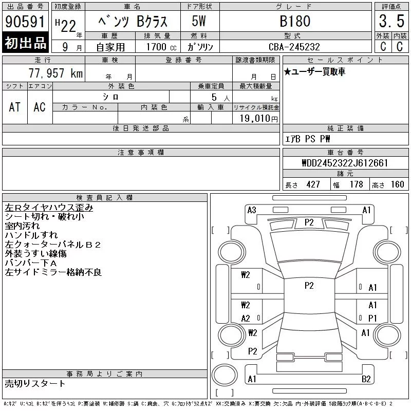 Mercedes-Benz B CLASS 2010 • 824138 ₽ под ключ из Японии