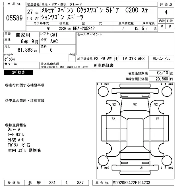 • Комплектация: C200 ステ-ション Wagon Sports