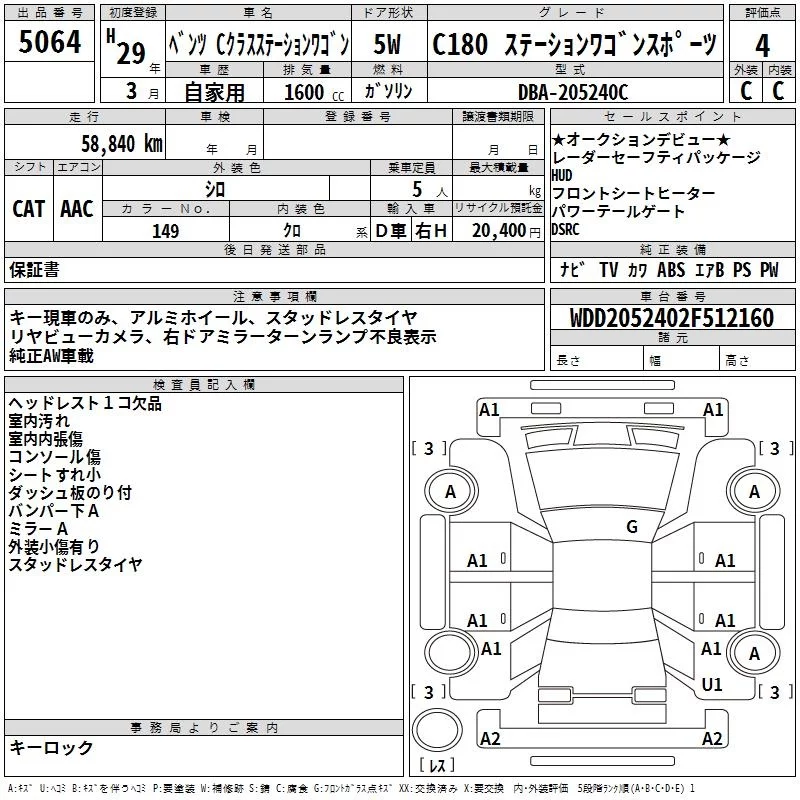 • Комплектация: C180 ステ-ション Wagon Sports
