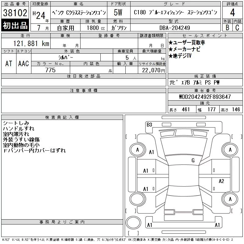 • Комплектация: C180 Bエフィ ステ-ション Wagon