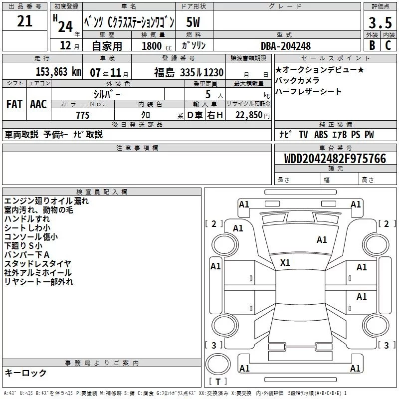 Mercedes-Benz C CLASS WAGON 2012 • 990712 ₽ под ключ из Японии