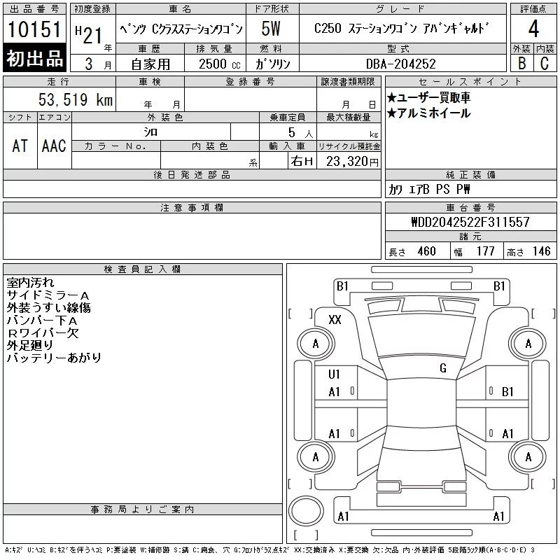 • Комплектация: C250 Wagon ア Van G