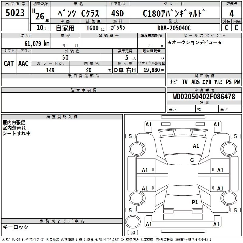 Mercedes-Benz C CLASS 2014 • 1544378 ₽ под ключ из Японии