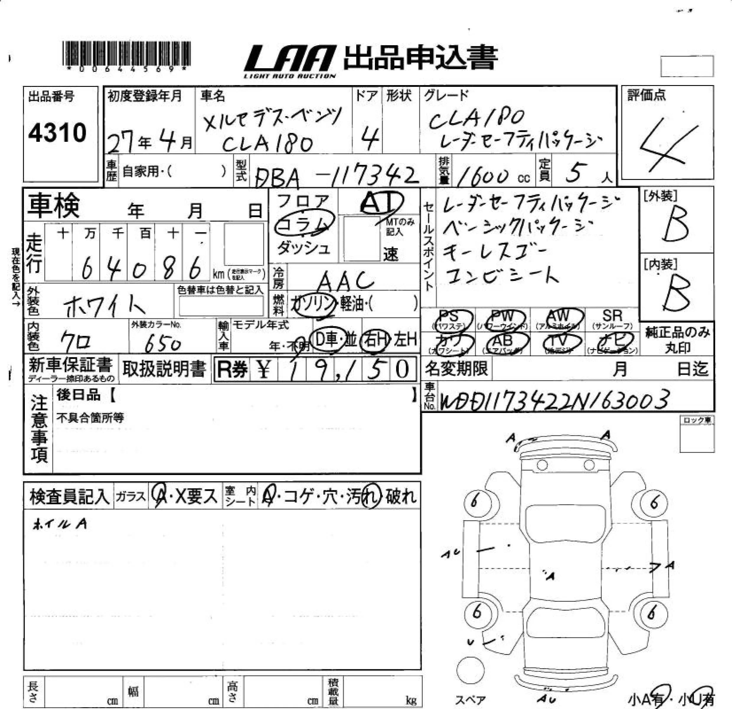 • Комплектация: CLA180 Radar -セ-フテ