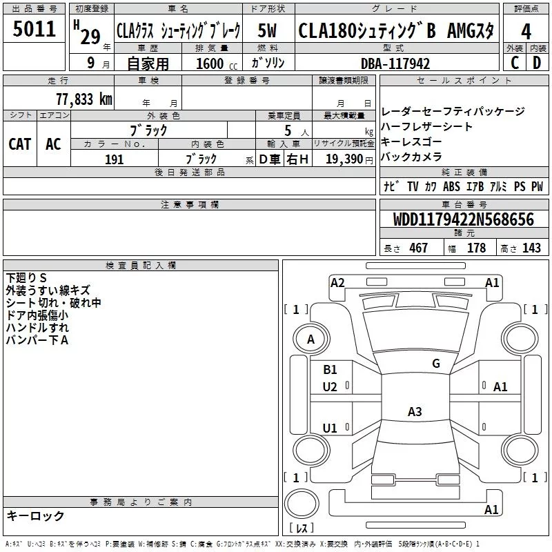 • Комплектация: CLA180シュティングB AMG Star