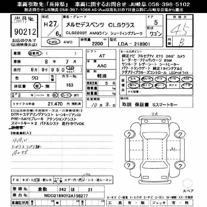 • Комплектация: CLSクラス CLS220BT AMG Line シュ-ティンク