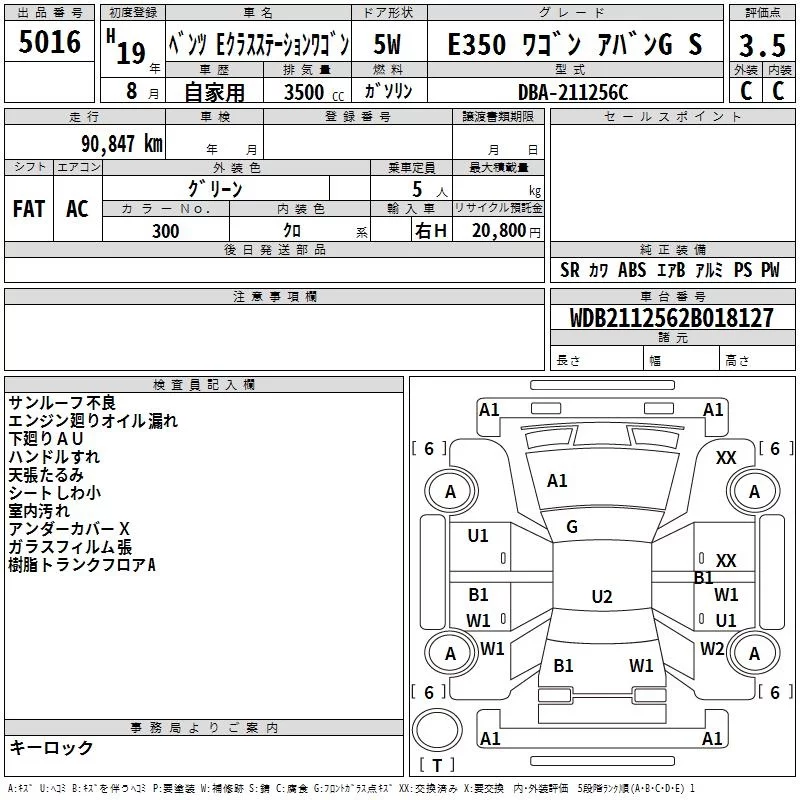 • Комплектация: E350 Wagon ア Van G S