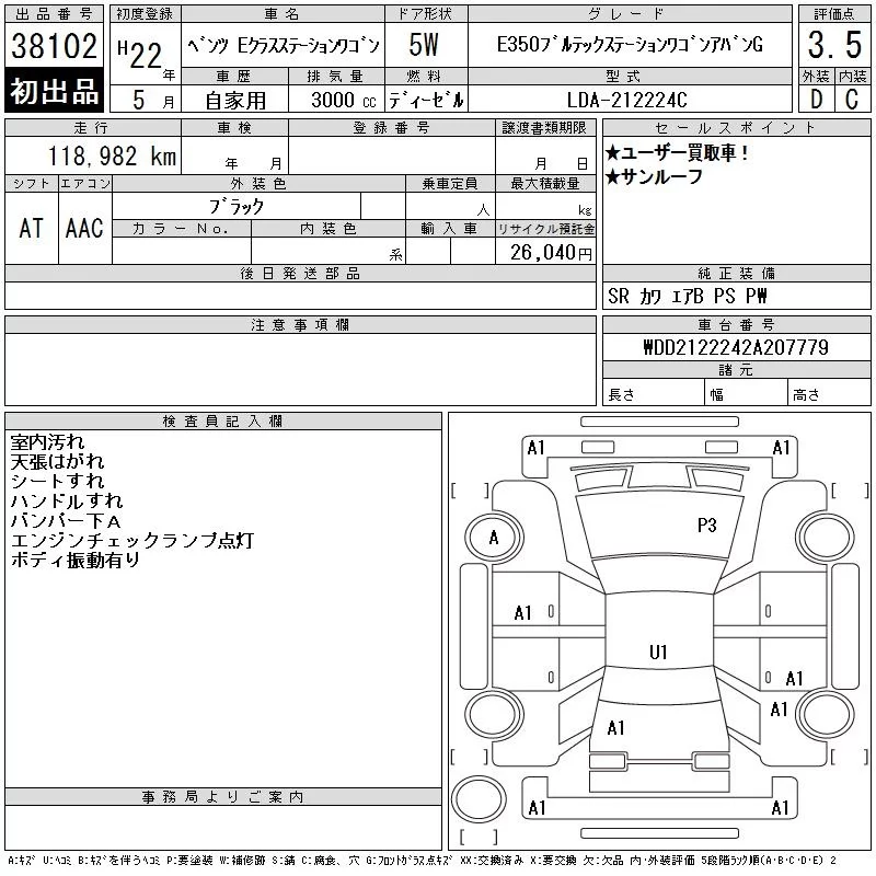 • Комплектация: E350 Blue テック Wagon ア Van G