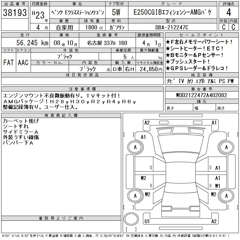• Комплектация: E250CGIBエフィシェンシ-AMG