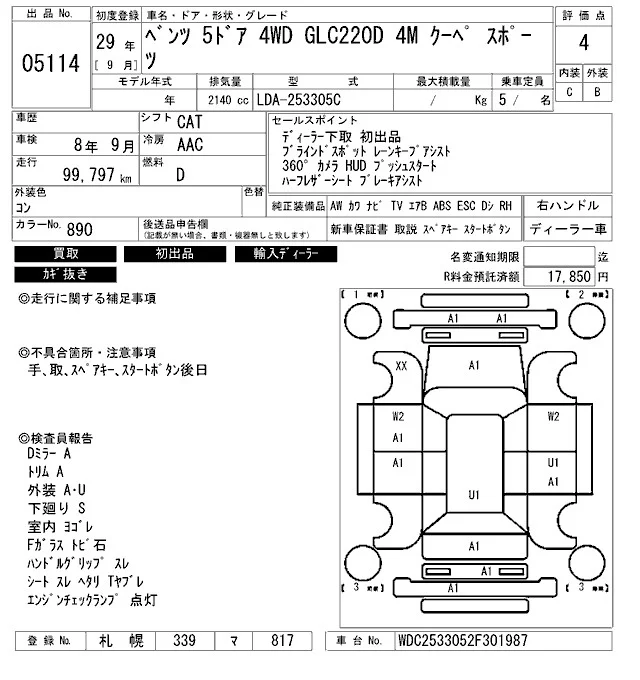 Mercedes-Benz GLC CLASS 2017 • 2447859 ₽ под ключ из Японии