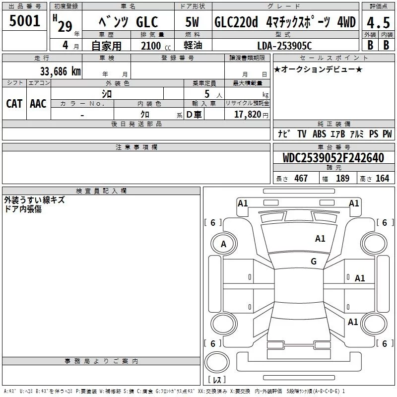 Mercedes-Benz GLC CLASS 2017 • 2626520 ₽ под ключ из Японии