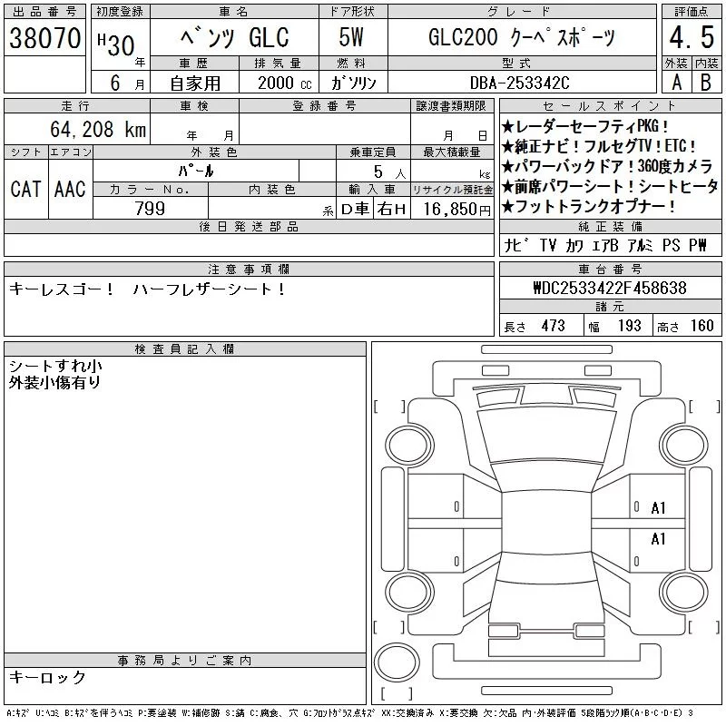 Mercedes-Benz GLC CLASS 2018 • 2900368 ₽ под ключ из Японии