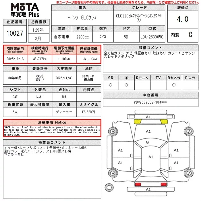 • Комплектация: GLC220d4マチ Sports (ホンカワ Not Used )