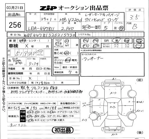 Mercedes-Benz V CLASS 2017 • 6254880 ₽ под ключ из Японии