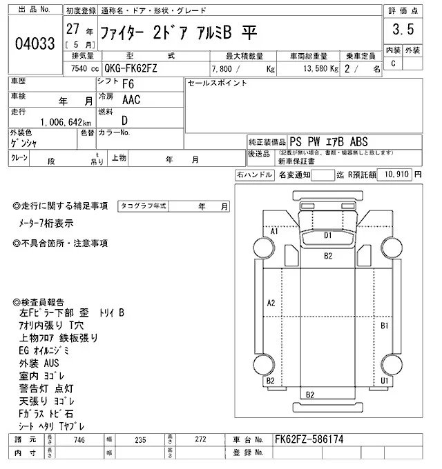 Дополнительными расходами может быть "сверхнормативное" хранение в порту, согласно СВХ "ВАТ": с 6-8 сутки по 1000р, 9-10 сутки по 2000р, с 11 суток по 5000р. Так же, в случае оформления а/м на физ лицо с пропиской не ДВФО, брокер предоставляет либо услугу оформления на ДВ физика стоимостью 20000р или регистрация ФЛ стоимостью 10000р. Вся представленная на сайте информация, касающаяся технических характеристик, наличия на складе, стоимости товаров, носит информационный характер и ни при каких условиях не является публичной офертой, определяемой положениями Статьи 437(2) Гражданского кодекса РФ.