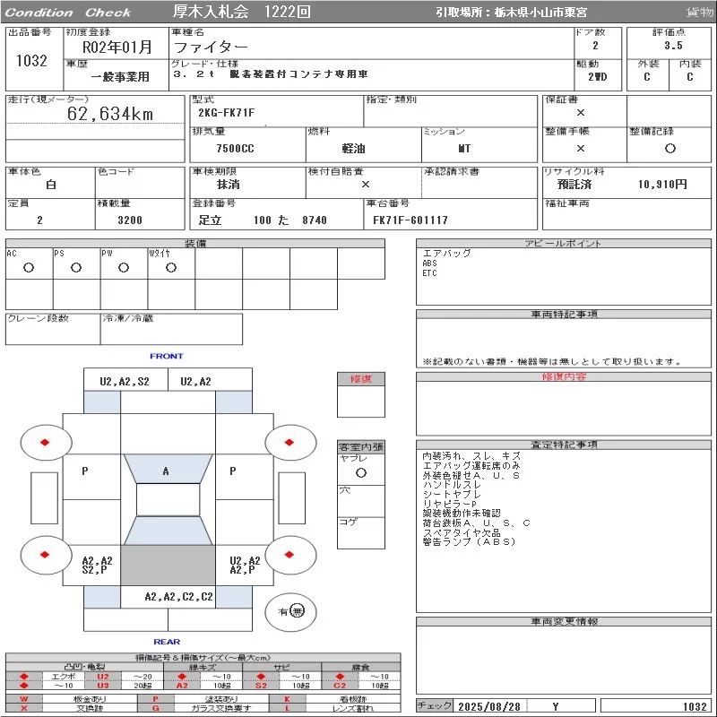 • Комплектация: 3.2t 脱着装置付コンテナ専用車