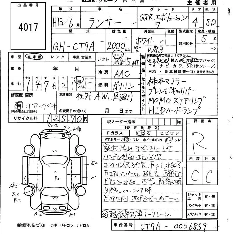 - Комплектация: GSR Evolution Ⅶ