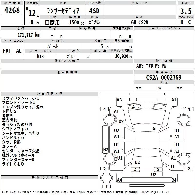 Mitsubishi LANCER 2000 • 429698 ₽ под ключ из Японии