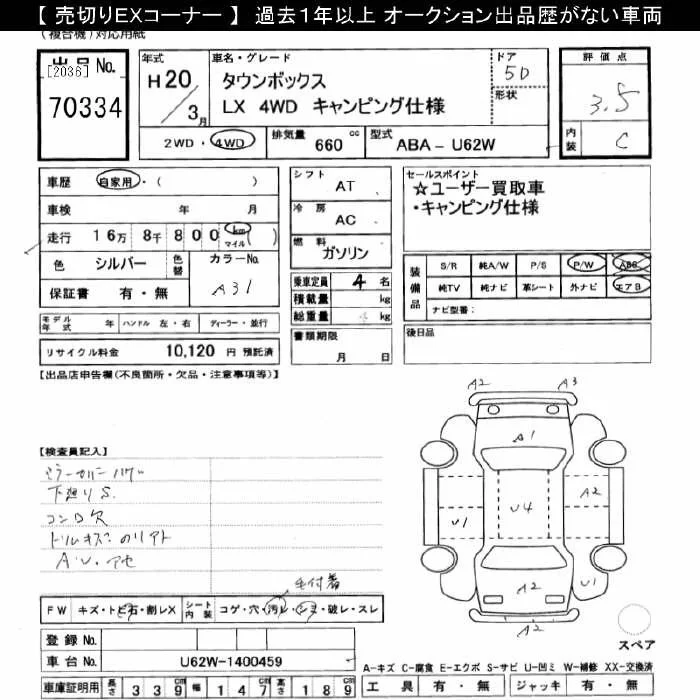 • Комплектация: 4WD LX Key ャンピング Not Used