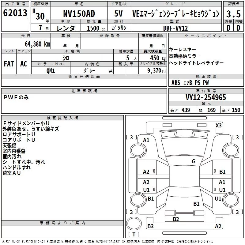 - Комплектация: VE Emergency Brake ヒョウシ