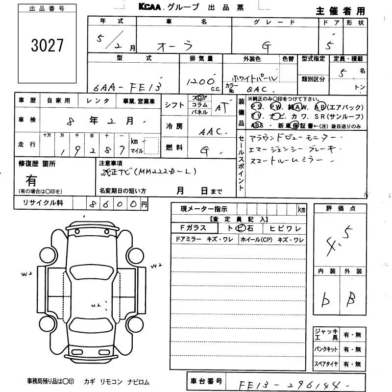 Надёжный авто с проверенного аукциона KCAA Fukuoka