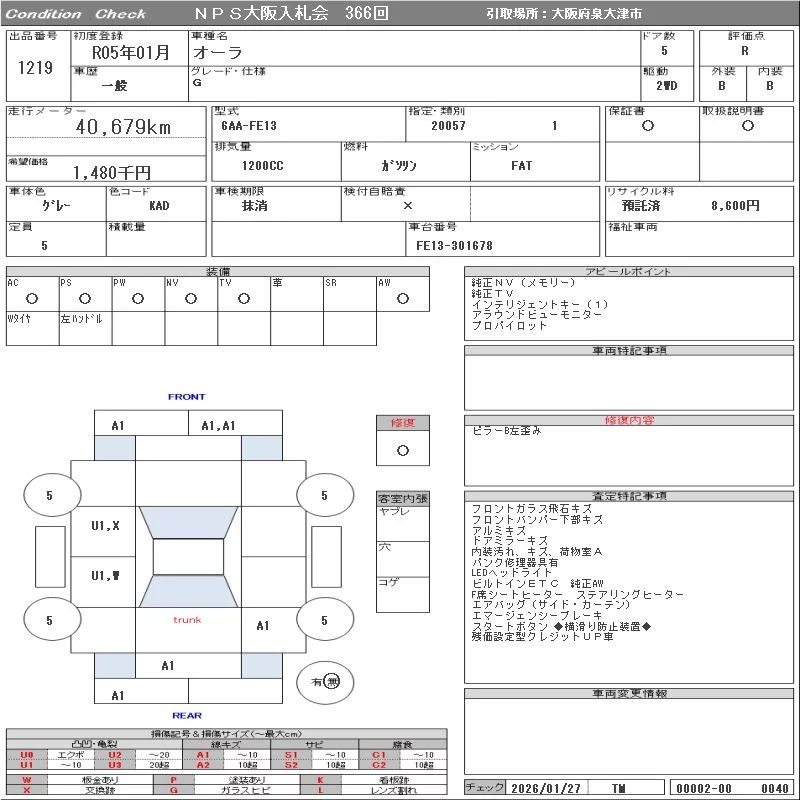 Надёжный авто с проверенного аукциона NPS Osaka Nyusatsu