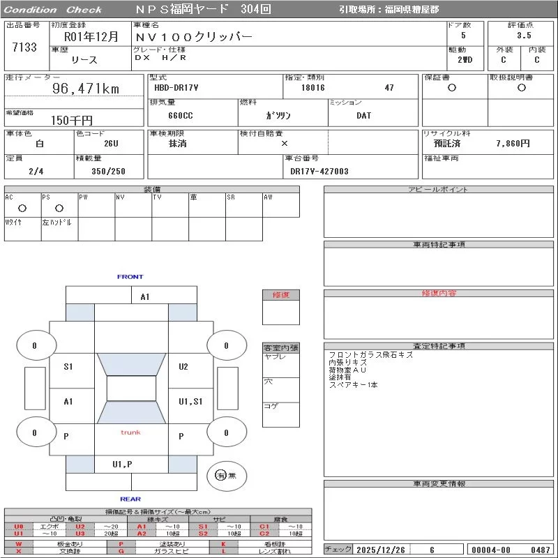 Надёжный авто с проверенного аукциона NPS Fukuoka Nyusatsu
