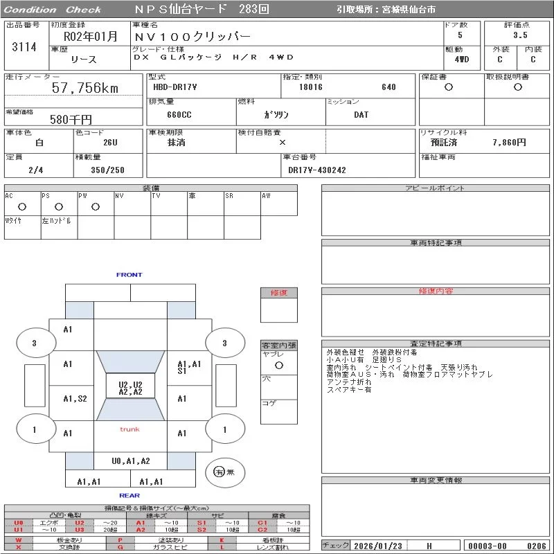 Надёжный авто с проверенного аукциона NPS Sendai Nyusatsu
